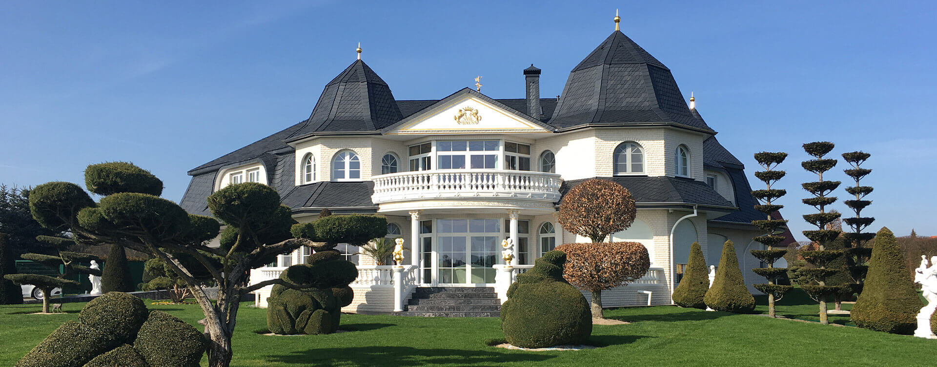 Luxus-Architektenhäuser ... VILLA PALAIS ROYAL ... Die Traum-Villa im 10.000 qm großen englischen Park mit den in Form geschnittenen Bäumen ... eine "Oase der Glückseeligkeit" und natürlich ...eine "aus dem allgemeinen Bauschaffen weit herausragende" Luxus-Villa.