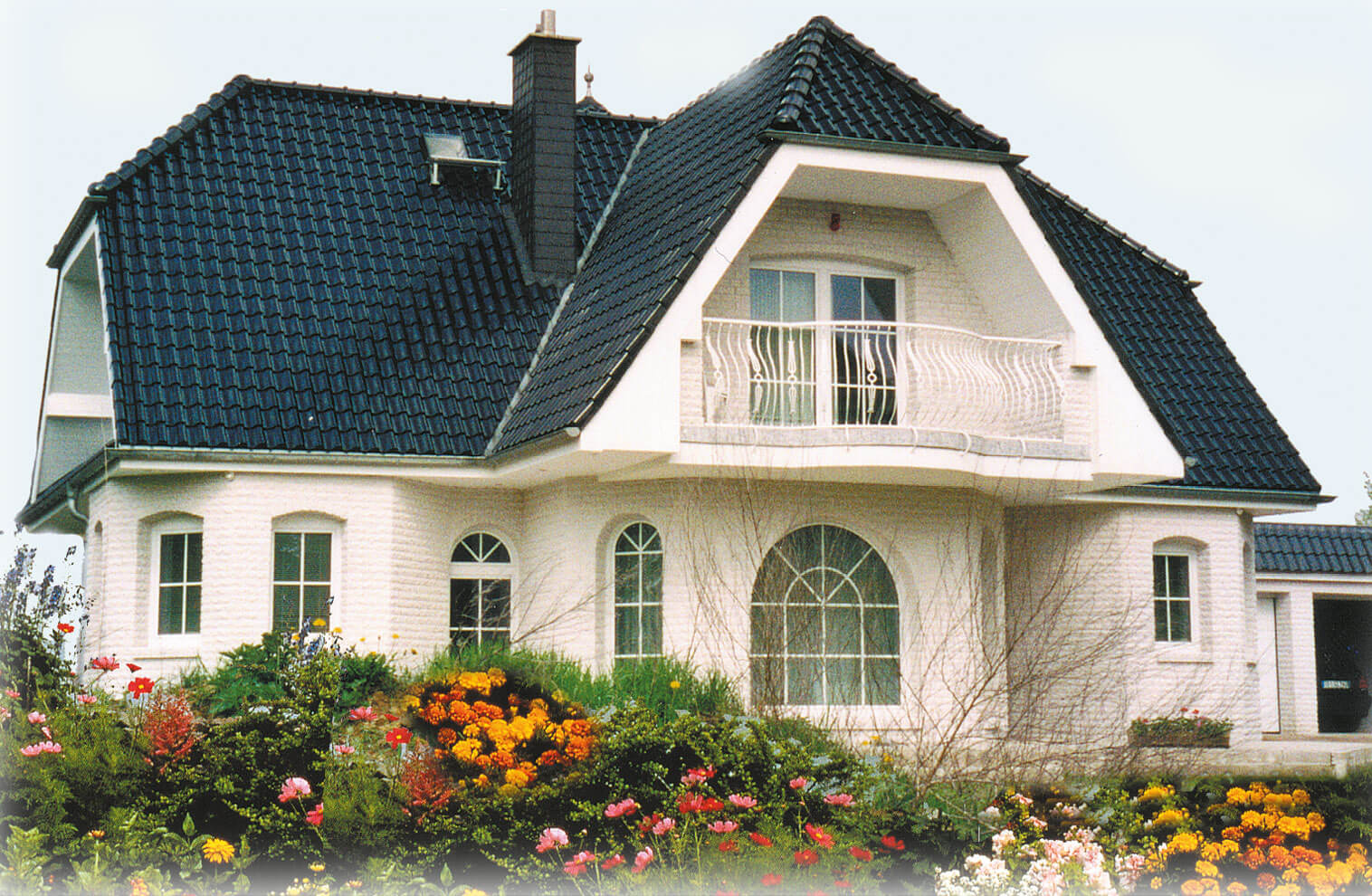 ein repräsentatives Eigenheim ... ein romantisches Turmhaus mit Trapez förmigen Gauben im traditionellen beliebten Walmdach.