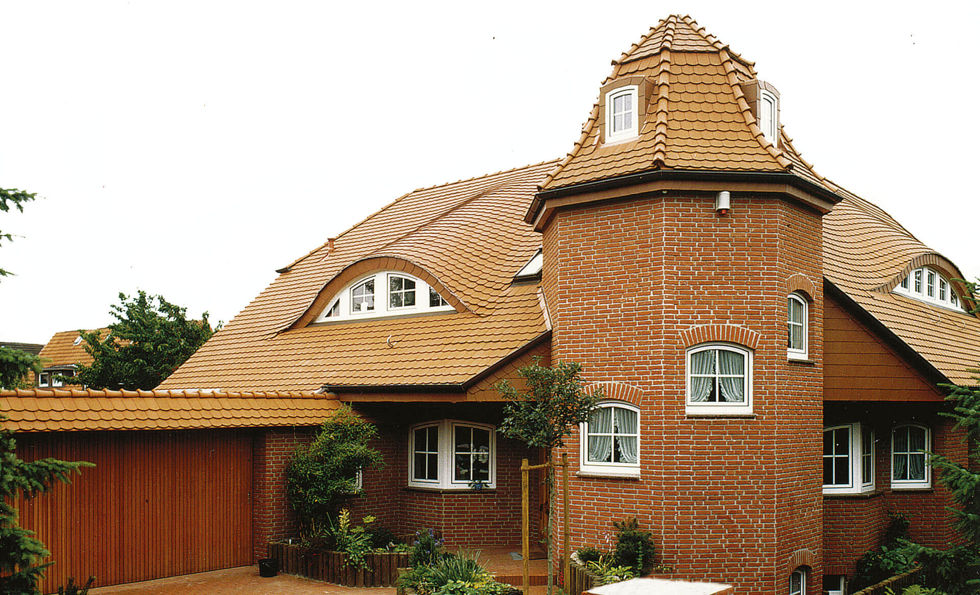 Öko-Klinker-Häuser ... Dieses anspruchsvolle Klinker-Haus mit Turm und Schwalbenschwanz-Gauben im anmutigen rotem Biberdach ist ein ganz besonders behagliche Eigenheim für Generationen ... ein ökologisches Klinker-Landhaus ökonomisch und Energiesparend zugleich geplant und nachhaltig gebaut.